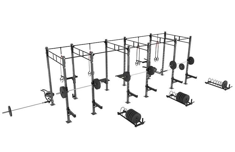 Dip stations, squat racks, landmines, plyo steps, battle ropes, optional Olympic bars and plates, suspension trainers and so much more.
