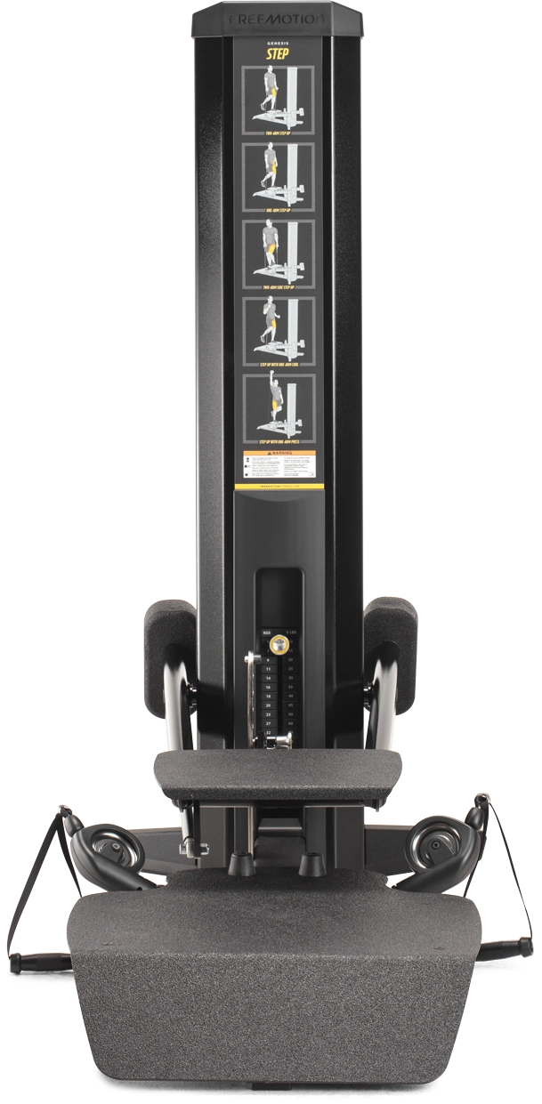 Balance and strength are things we use everyday in life. The Genesis Step by Freemotion builds balance and strength through user-defined movement and a hydraulic ‘quick adjust’ step. Create a circuit with other Genesis strength machines and the Step brings in the cardio – with Freemotion cable to add resistance and create a more challenging workout. An increased heart rate kick starts a metabolic effect that lasts for hours after stepping off the machine. Work up to two people at a time on the Freemotion Genesis Step, the multi-functioning tool that does more than what meets the eye.