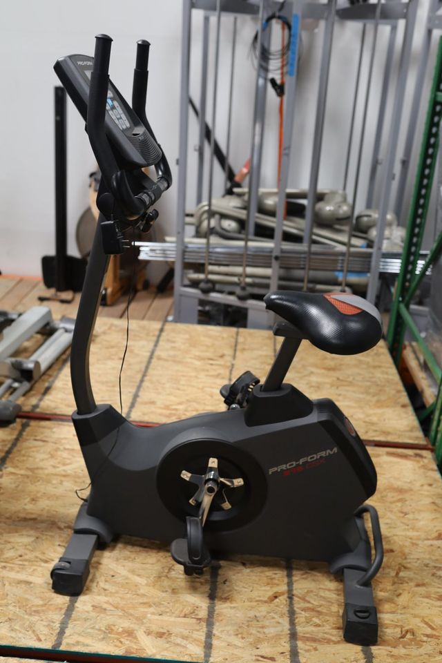This upright bike by Proform has been cleaned and serviced by our fitness equipment experts. Features a dual-grip heart rate monitor, sixteen built-in personal trainer workouts, an adjustable seat, and Google Maps compatibility. Comes with a 30-day warranty (Las Vegas residents only).