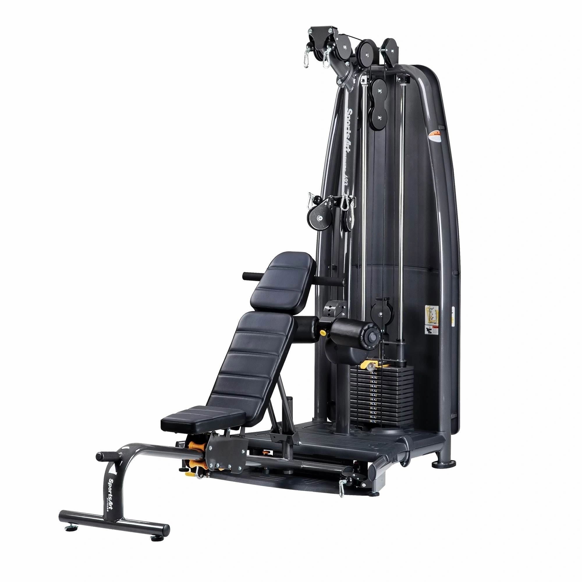 Comfortable cushions, correct ergonomics, magnetized selector fork instantly locks into place for quick, secure action, retracting cord keeps selector fork from disappearing while eliminating clutter, flat “fork-style” selector supports weight plates, rather than balancing on a thin, single selector pin, precision sound dampeners keep stack action quiet, cold rolled steel weight plates resist rust, convey quality.11-gauge (3 mm) steel elliptical tube means lasting strength